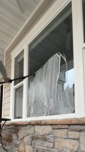 Professional window cleaning for a home in Logan, Utah. We scrubbed this large exterior window to remove hard water for a sparkling, streak-free result.